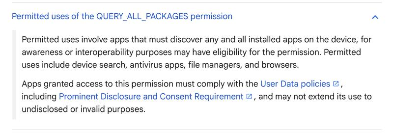 Developers are encouraged to proactively implement alternative security or fraud prevention solutions that do not rely on the QUERY_ALL_PACKAGES permission.